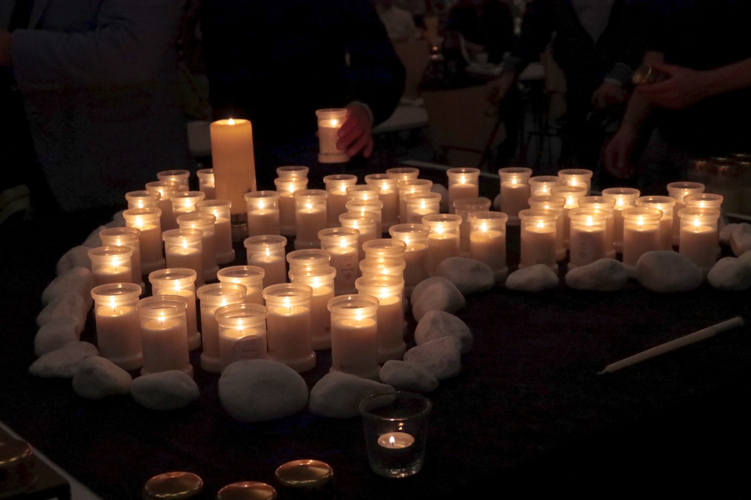 Het was een indrukwekkend gezicht, al die lichtjes op het graf. Er stonden vuurkorven en fakkels om de aanwezigen te helpen hun route op het graf te vinden. Na afloop was er warme chocolademelk en koffie en bleven veel nabestaanden napraten.